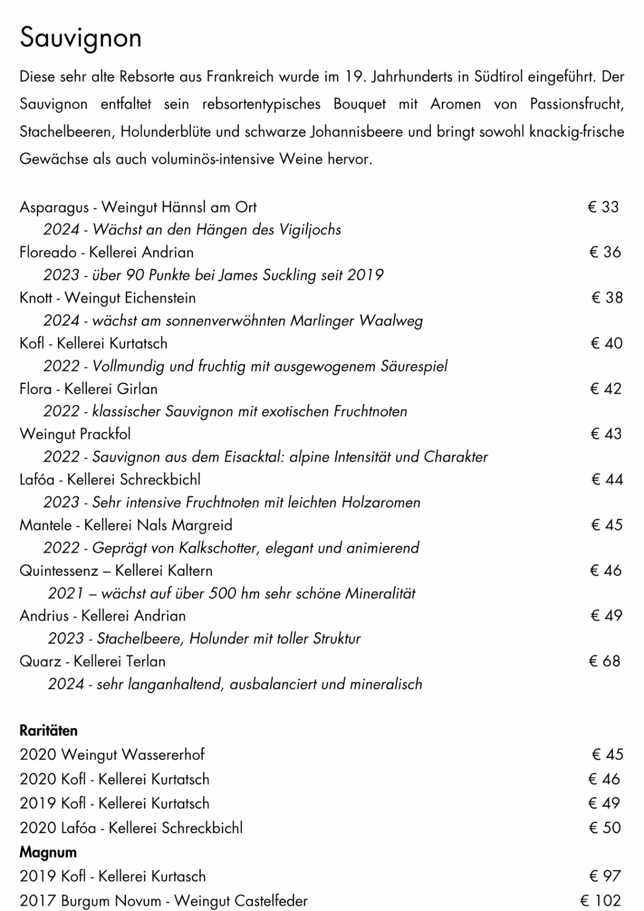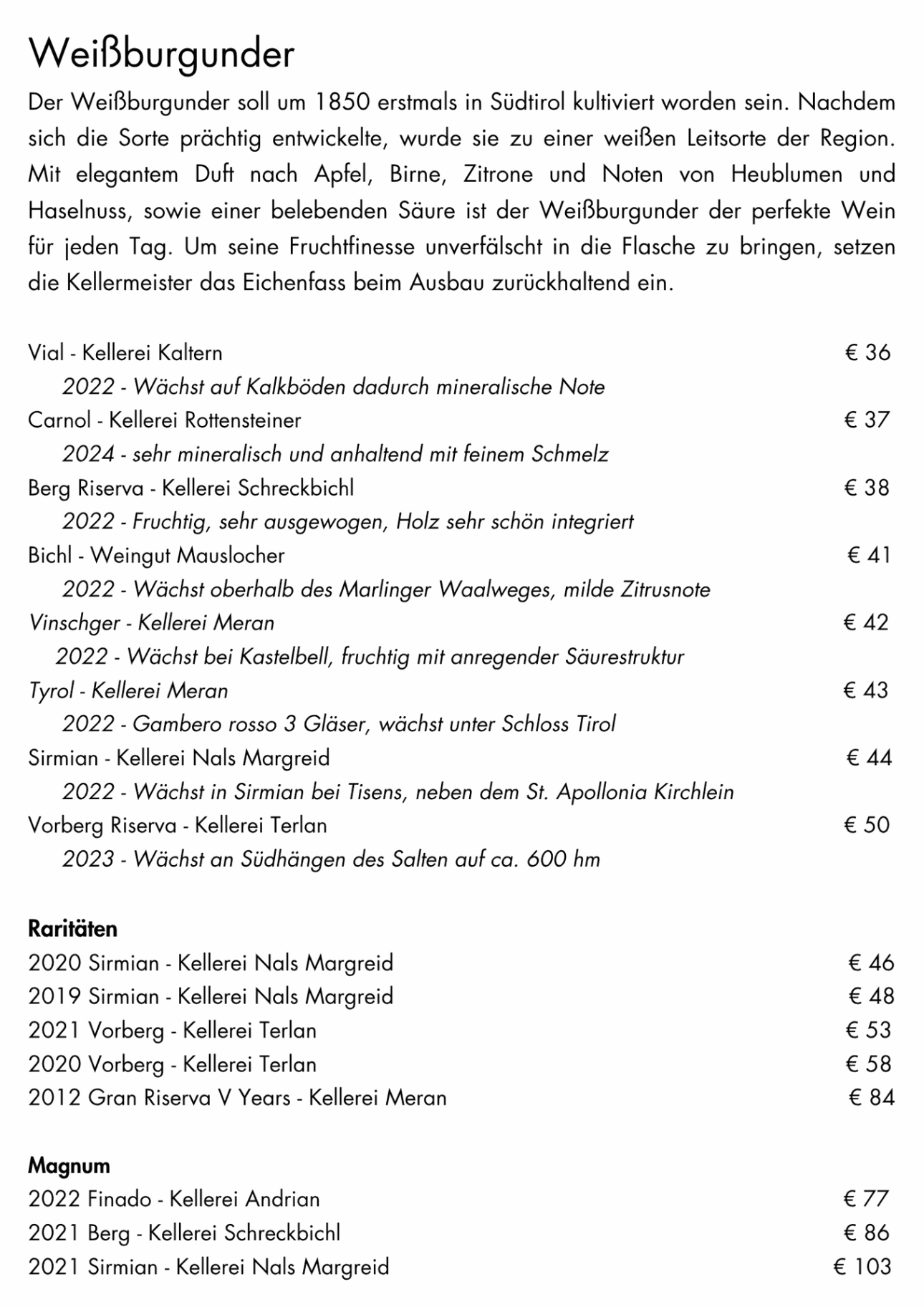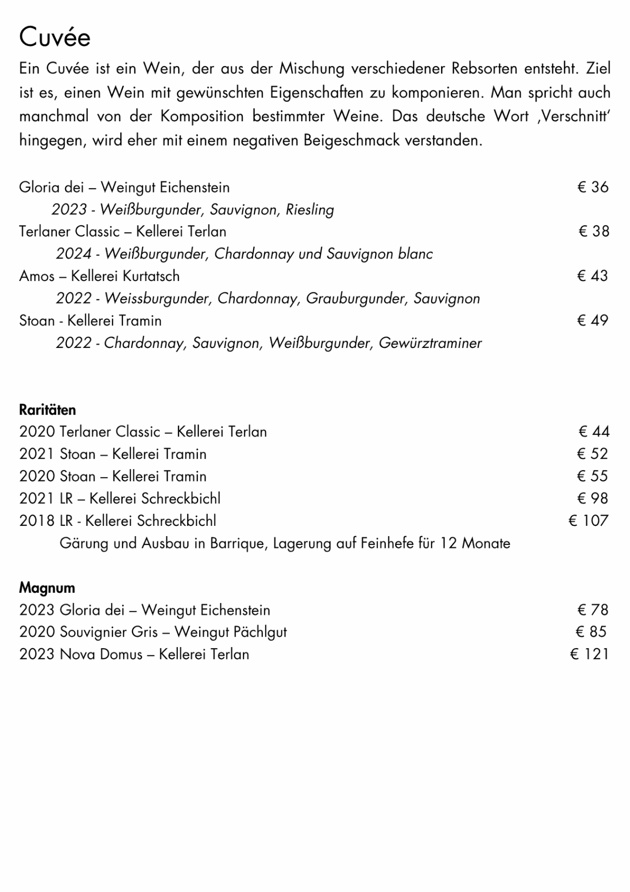 Weinkarte